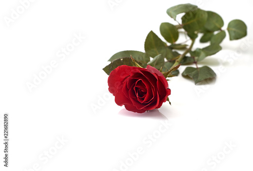 Add to likebox 11915223 red rose with raindrops on the leaves lying on the white background.