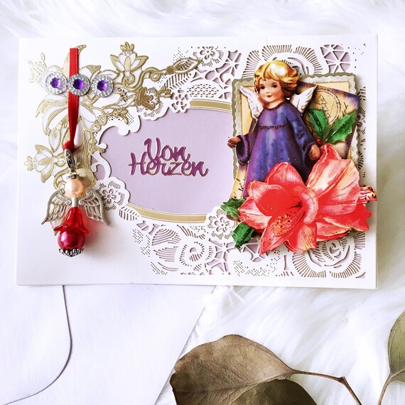 Handmade Greeting Card In 3d With Angels And Flowers With Etsy