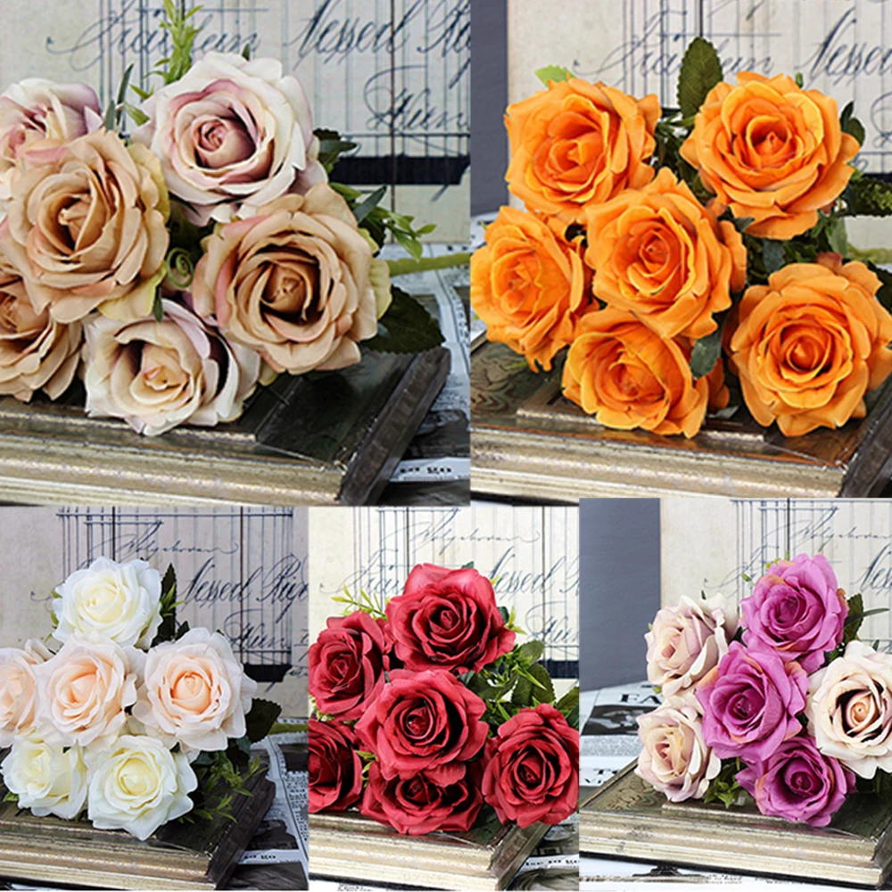 6 Heads Silk Roses Artificial Flowers Fake Roses Bridal Bouquets