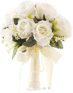 Yansion Bridal Bouquet Wedding Bouquets White Artificial Fake Rose