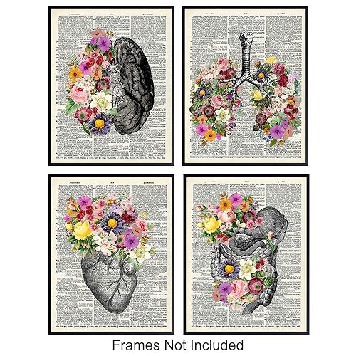 Amazon Com Organs Flowers Dictionary Wall Art Decor Set 8x10