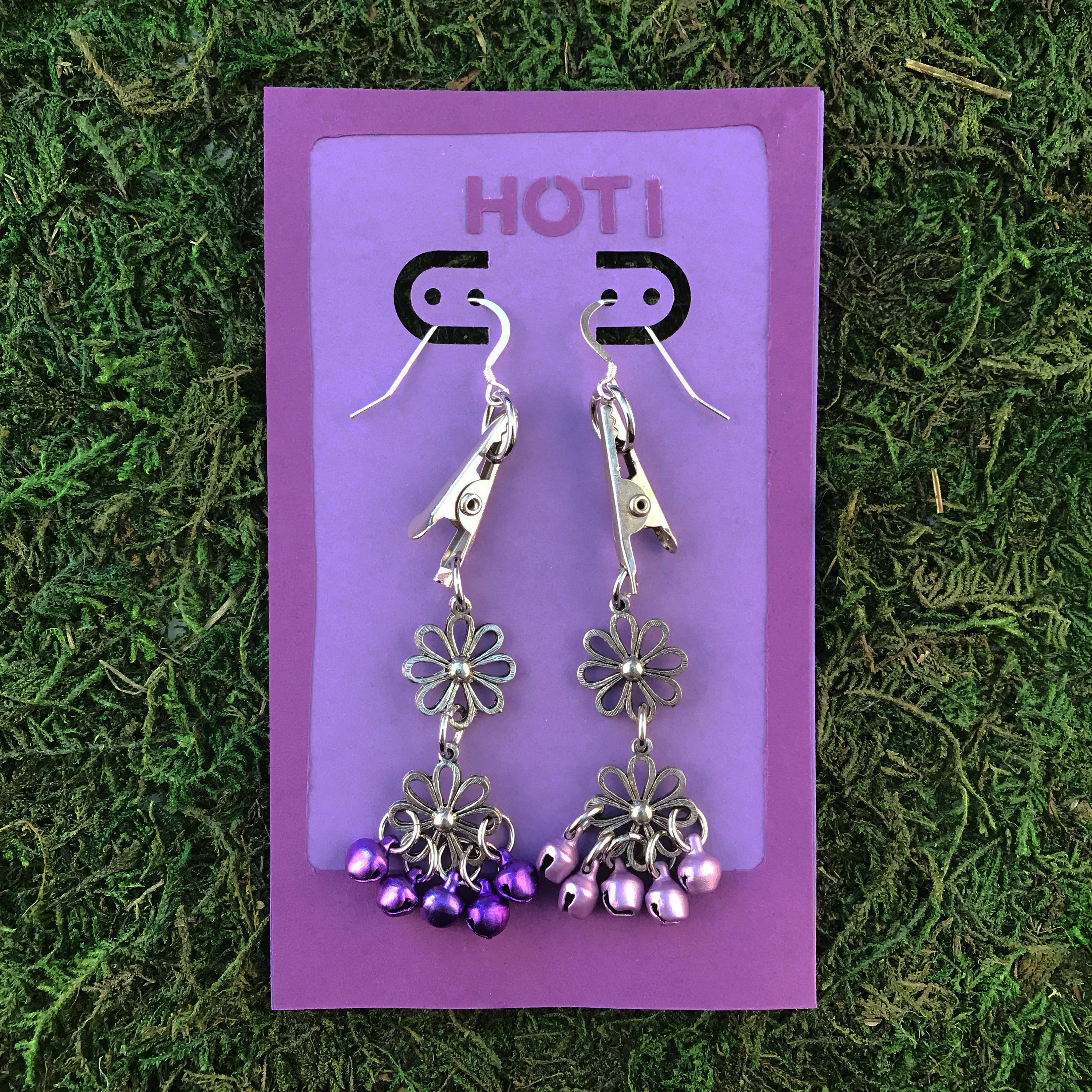 Bright Light Purple Roach Clip Bells Of Joy Earrings Flowers Bell