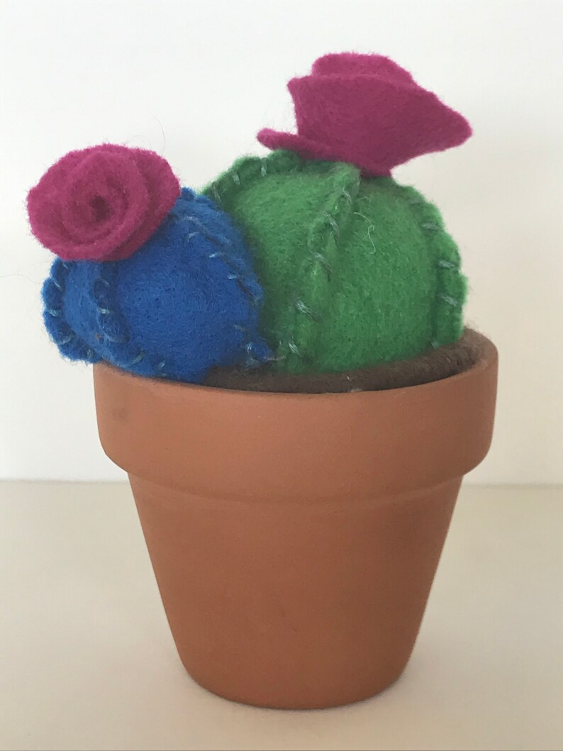 Double Round Cacti With Pink Flowers Etsy