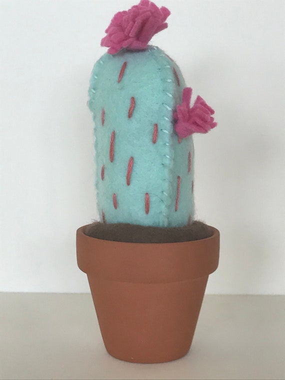 Chubby Light Blue Cactus With Pink Flowers Etsy