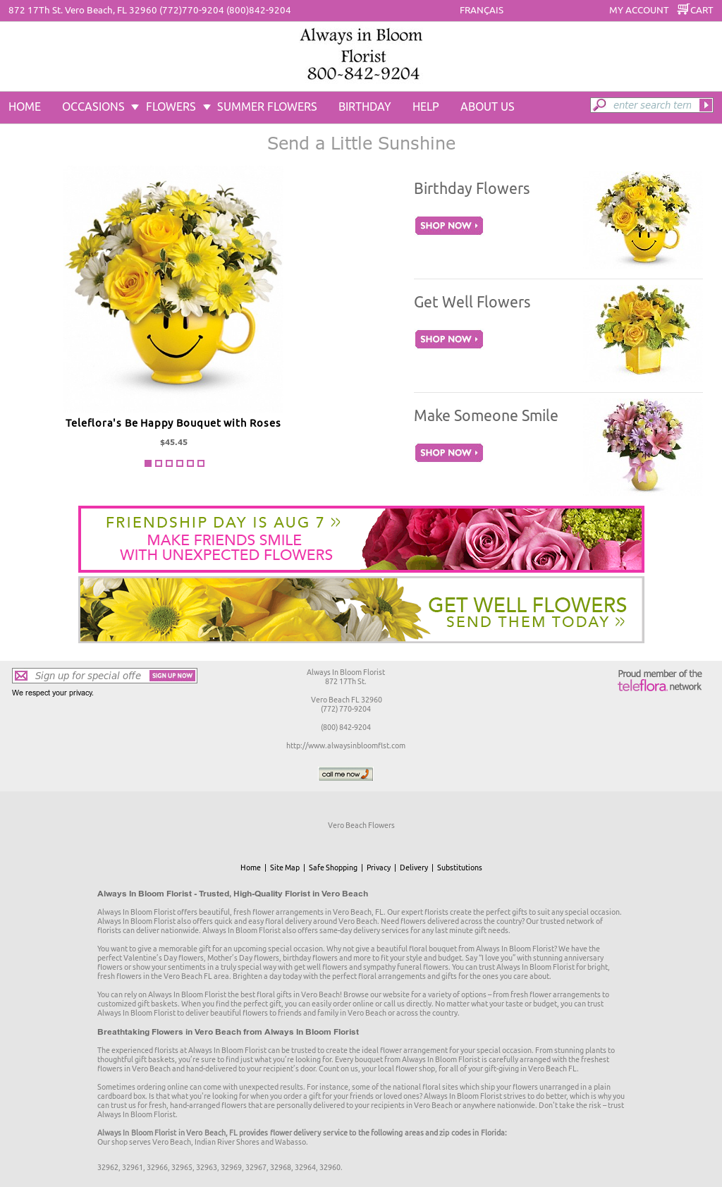 Always in bloom florist proudly serves the vero beach areawe are family owned and operated.