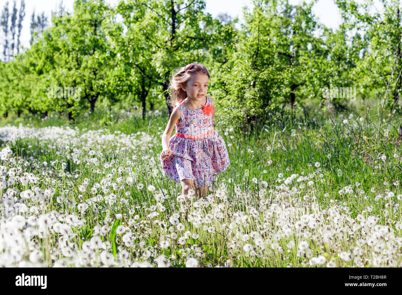 Beautiful Baby Girl Picking Flowers From The Garden Stock Photo