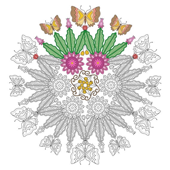 Instant Download Beautiful Butterfly Circle Coloring Page Etsy