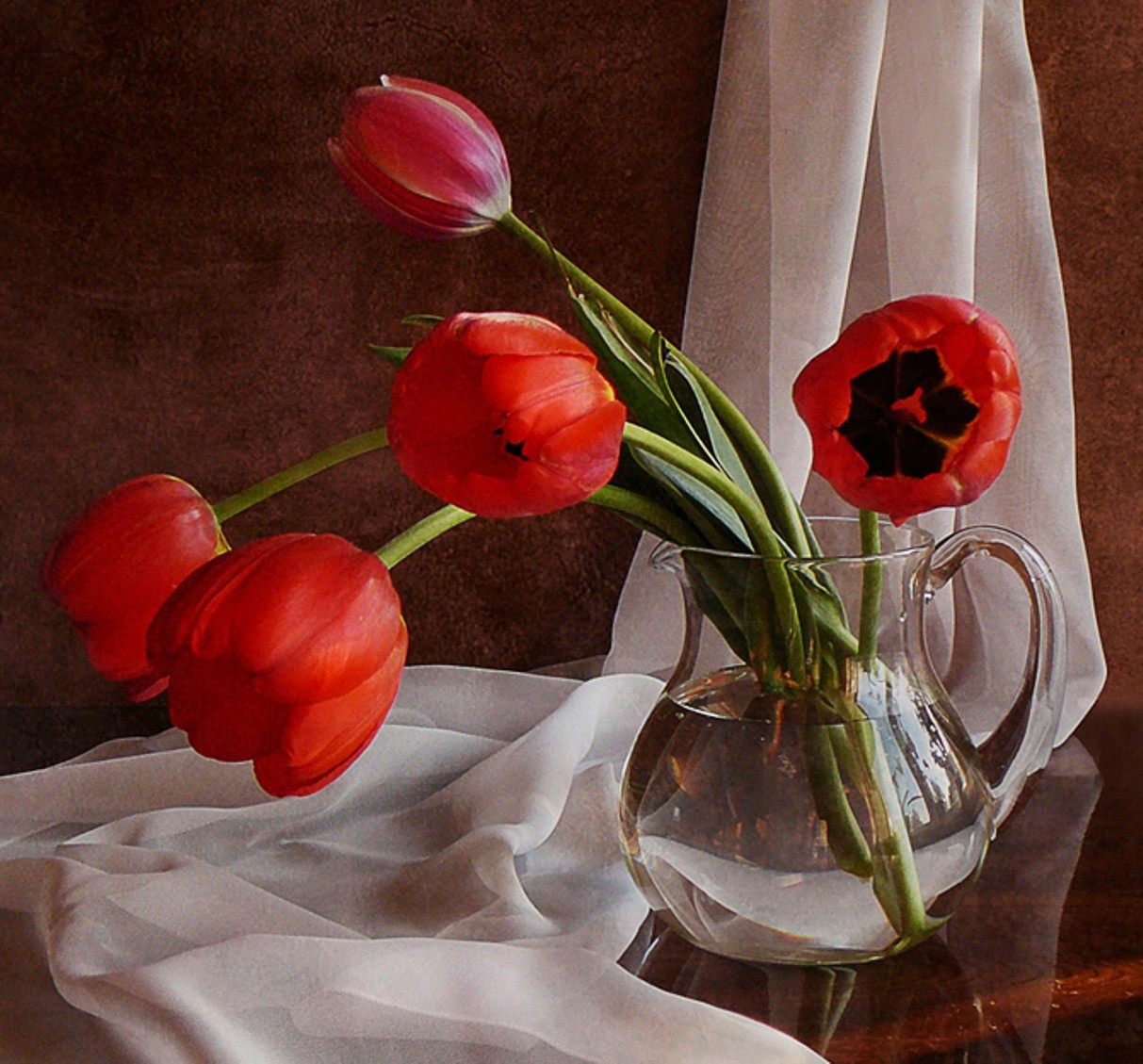 Day Red Tulips Good Morning Sunny Vase Life Beauty Bouquet