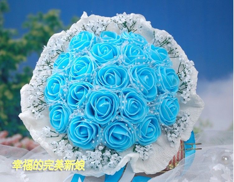 Beautiful Blue Wedding Bouquet Artificial 20 Rose Flowers Bridal